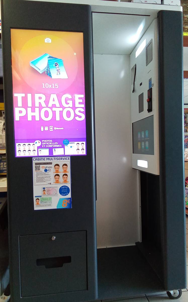 Petite nouveauté chez nous, une cabine multiservice pour : photos d'identités, tirages photos, impression de documents, recharge smartphone.